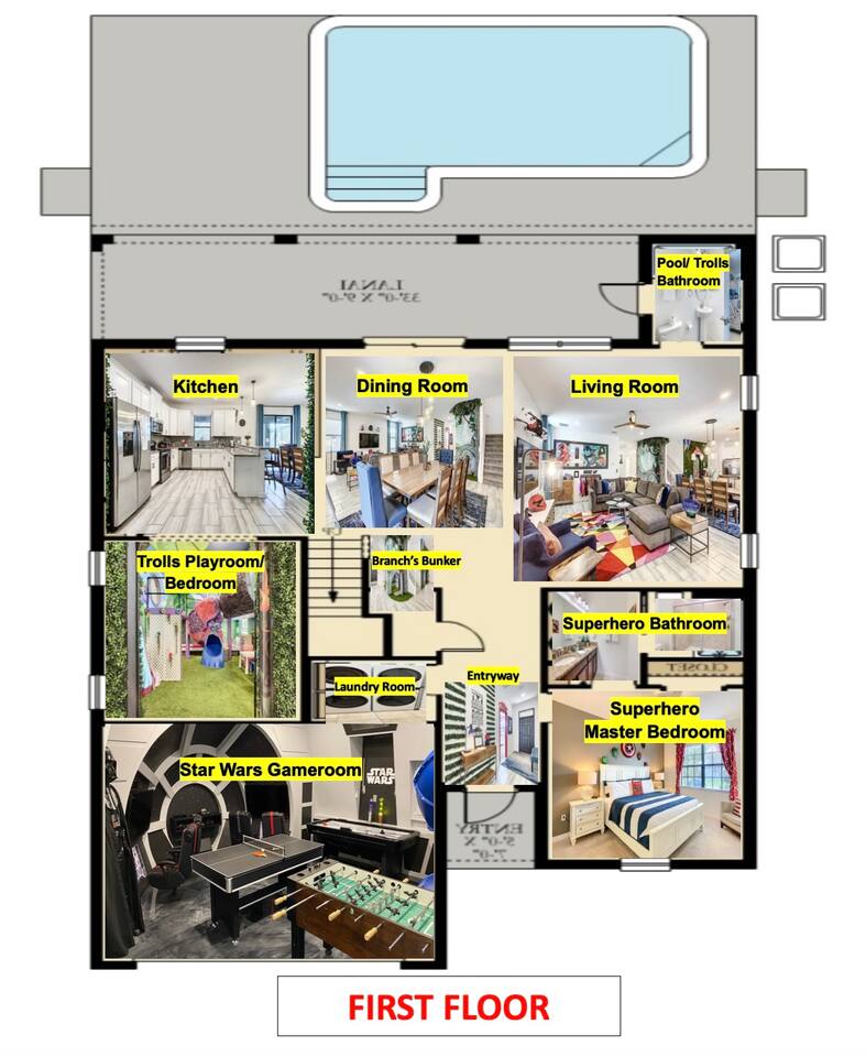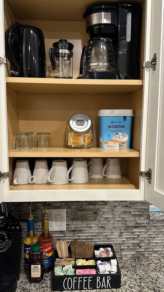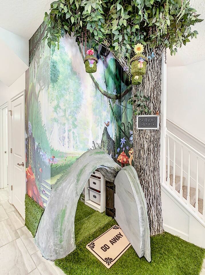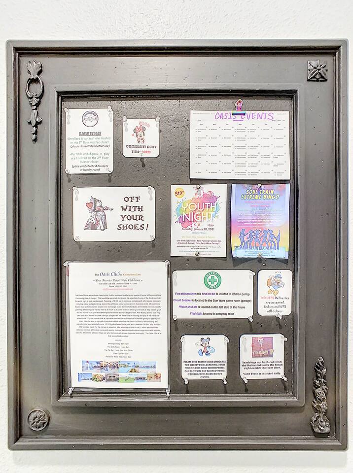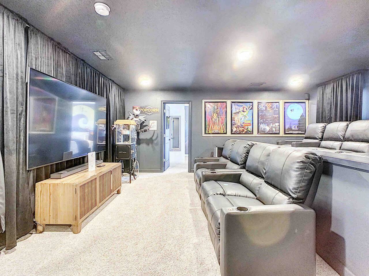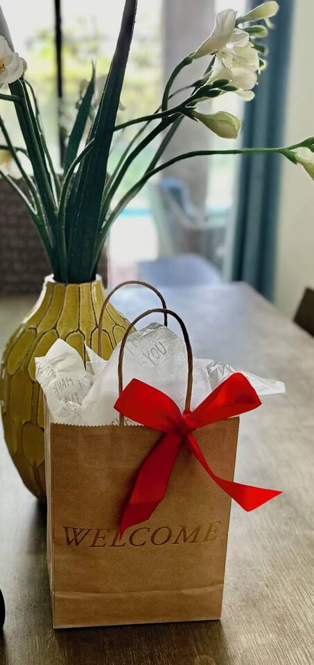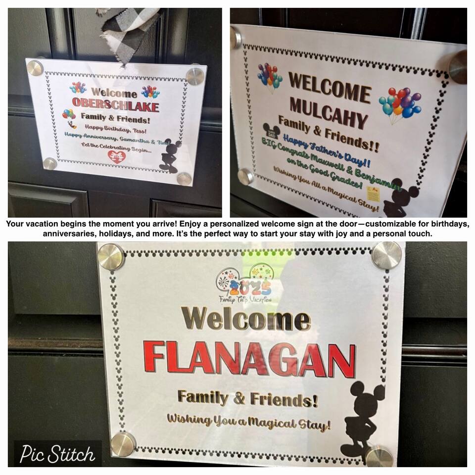 We believe a vacation is about making lifelong cherished memories—not just a place to stay or an experience. That's why we've thoughtfully provided exceptional amenities and personalized touches to make your stay magical and unforgettable. 🎀 PERSONALIZED WARM WELCOME •✨ Custom Greeting: Begin your stay with a personalized touch—your party’s name displayed on the door, celebrating special occasions like a first Disney trip, birthday, or retirement. We’ll reach out a week prior to plan this special detail. • 🎁 Welcome Gift: Upon arrival, discover a complimentary gift bag filled with tasty snacks to help you relax and settle in after your journey. •🍫Smores Kit: Delight in a special welcome surprise for the kids! Enjoy cozy evenings around two patio fire pits with our complimentary s’mores kit, perfect for creating sweet family memories under the stars. 🎉 FAMILY FUN AMENITIES • 🕵️♂️ Mickey Scavenger Hunt: Ignite your children's imagination with our exciting Mickey Scavenger Hunt! They'll love exploring every nook and cranny of the house in search of 23 hidden Mickeys painted throughout the walls. his interactive adventure ensures endless fun. Parents receive an answer key to ensure a fun and easy hunt for the whole family. • 🎅🏼 Holiday Decorations: To make your stay even more memorable, we decorate for the holidays, creating a festive atmosphere for you and your family to enjoy. From twinkling lights to a beautifully decorated tree, we bring the holiday spirit right to your home away from home. See photos • 🛝 Kids Zones - Trolls Haven Let your kids immerse themselves in a whimsical Trolls-inspired paradise where play and imagination come to life! Step into Branch’s Bunker, a magical space equipped with a full kitchen set, complete with play food, kitchenware, and endless possibilities for pretend cooking adventures. Kids can suit up in Branch’s survival vests to outwit the Bergens, creating exciting chase and tag games as they explore the interconnected Trolls bedroom/playroom and the Star Wars game room. For double the fun, they’ll have access to two thrilling slides: • One slide starts in the Trolls bedroom/playroom for nonstop fun. • The second slide, in the same room, transports them straight into the Star Wars game room for an intergalactic adventure! Trolls Haven is the ultimate kids’ zone where imagination knows no bounds and laughter echoes endlessly. • ☕ ME Time Discover your ultimate retreat in the house – a cozy cool spot designed just for relaxation. 🛋️ Whether you want to curl up with a good book or simply swing your cares away, this serene corner is perfect for unwinding and recharging. Sink into the comfort of the swinging seat, let the gentle motion soothe your soul, and take a moment to truly relax. It’s your space to escape, reflect, and enjoy some well-deserved “ME Time.” 🌿 • 🎥 Ultimate Home Theater Immerse yourself in cinematic bliss with stadium seating, an 86-inch 4K HD screen, and Dolby Atmos surround sound. Enjoy live sports, movies, and more with Spectrum TV or your streaming accounts. •🍿Commercial-Grade Popcorn Machine: Make movie nights extra special with our commercial-grade popcorn machine, delivering freshly popped, delicious snacks for an unforgettable cinematic experience. • 🌌 Ultimate Game Room Unleash the fun in this spectacular game room! Featuring a tube slide, gaming stations (Nintendo 64, Xbox, Atari, & 1UP arcade with 300+ games), ping pong, pool, and air hockey—adventures and unforgettable memories await! 🍽️ GOURMET CONVENIENCES •☕ Coffee/Tea/Hot Chocolate Bar: Start your day with a perfect cup from our Coffee/Tea/Hot Chocolate Bar. Choose between a Keurig, traditional 12-cup coffee maker, or Nespresso machine. We provide a variety of coffee grounds, flavored syrups, creamers, sugars, sugar substitutes, and tea bags for non-coffee drinkers. Additionally, enjoy non-caffeinated options for both coffee and tea enthusiasts. • 🧇Waffle Bar Extravaganza: Savor our complimentary Mickey waffle bar with all the toppings, including waffle mix, syrup, powdered sugar, cinnamon sugar, and chocolate chips. • 🍳 Chef’s Dream Kitchen: Cook like a pro with our fully stocked kitchen! Enjoy 33 spices, quality cookware, and appliances like crockpots. From gourmet meals to kid-friendly dishes, we’ve got everything you need. ✨ Luxury Comforts • 🏊♀️ Complimentary Pool & Spa Heating: A $30/day value included for free. • 🔥 Free Grill and Firepit Access: Make the most of your stay with **complimentary grill usage**—a perk that other hosts usually charge a daily fee. **We also provide a one-time propane tank reimbursement if you run out during your stay, ensuring your barbecue plans proceed without a hitch. • 🚿 Water Softening System: Enjoy softer water for cleaner linens, better-tasting drinks, and luxurious showers. • 🏖️ Relax and entertain in style! Enjoy the firepit, a 50-inch outdoor TV, and a cooler for your favorite drinks. Perfect for unforgettable evenings by the pool. • 🛏️ From the moment they were brand new, all our mattresses have been fully encased with premium protectors and topped with mattress toppers to ensure they stay clean and free from soiling. Our high-end, hotel-quality pillows have also been encased since new to guarantee both comfort and cleanliness. • 🧺 Dual LG washer and dryer setup—perfect for getting your laundry done quickly and efficiently. 🛋️ Comfort Essentials • 🧻 We go above and beyond to make your stay comfortable from the moment you arrive. Enjoy a robust supply of essentials, including: • Toilet paper (2 rolls per bathroom) • Bathroom soap • 1 roll of paper towels • Unlimited garbage bags • Unlimited dish soap • Unlimited dishwasher tabs • 3 laundry tabs with dryer sheets • Showers feature dispensers with unlimited shampoo, conditioner, and body wash. 