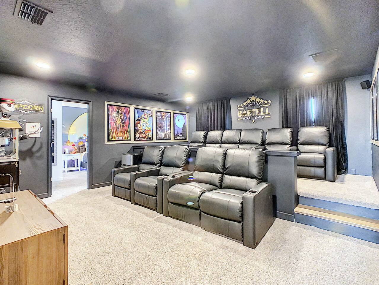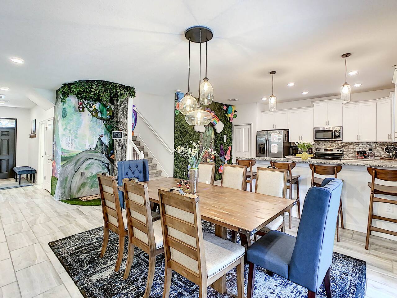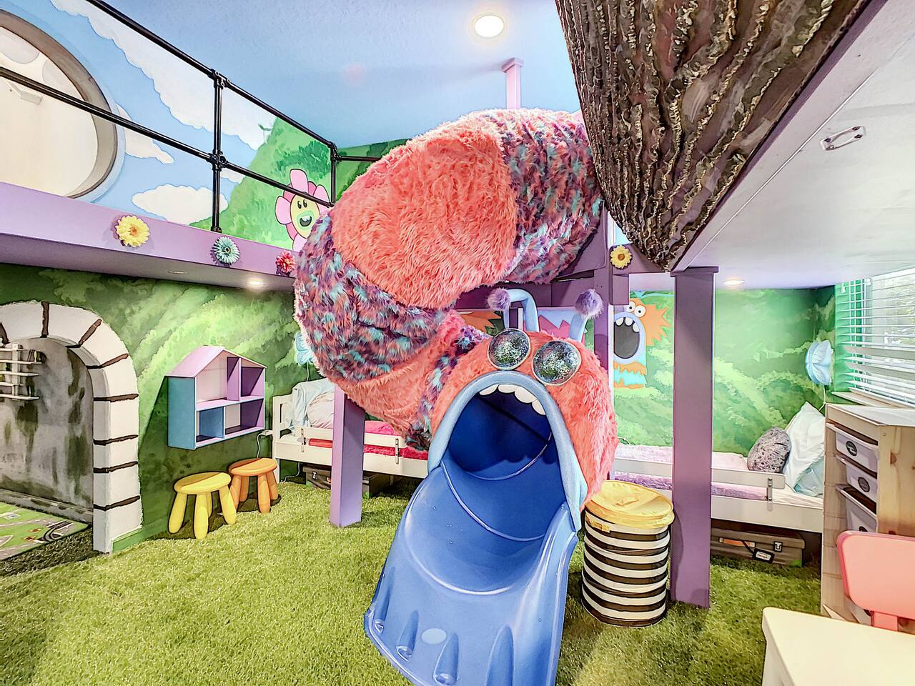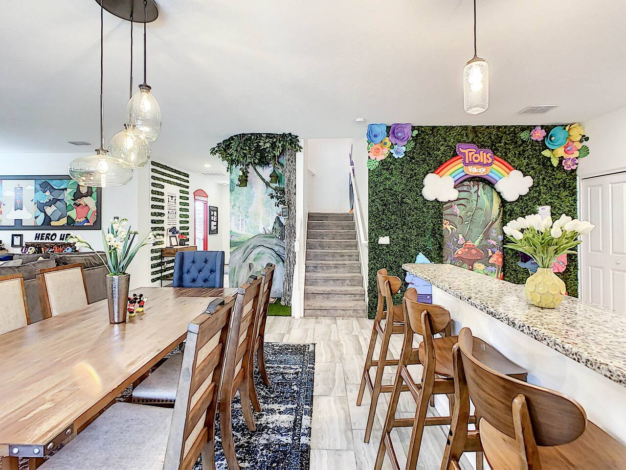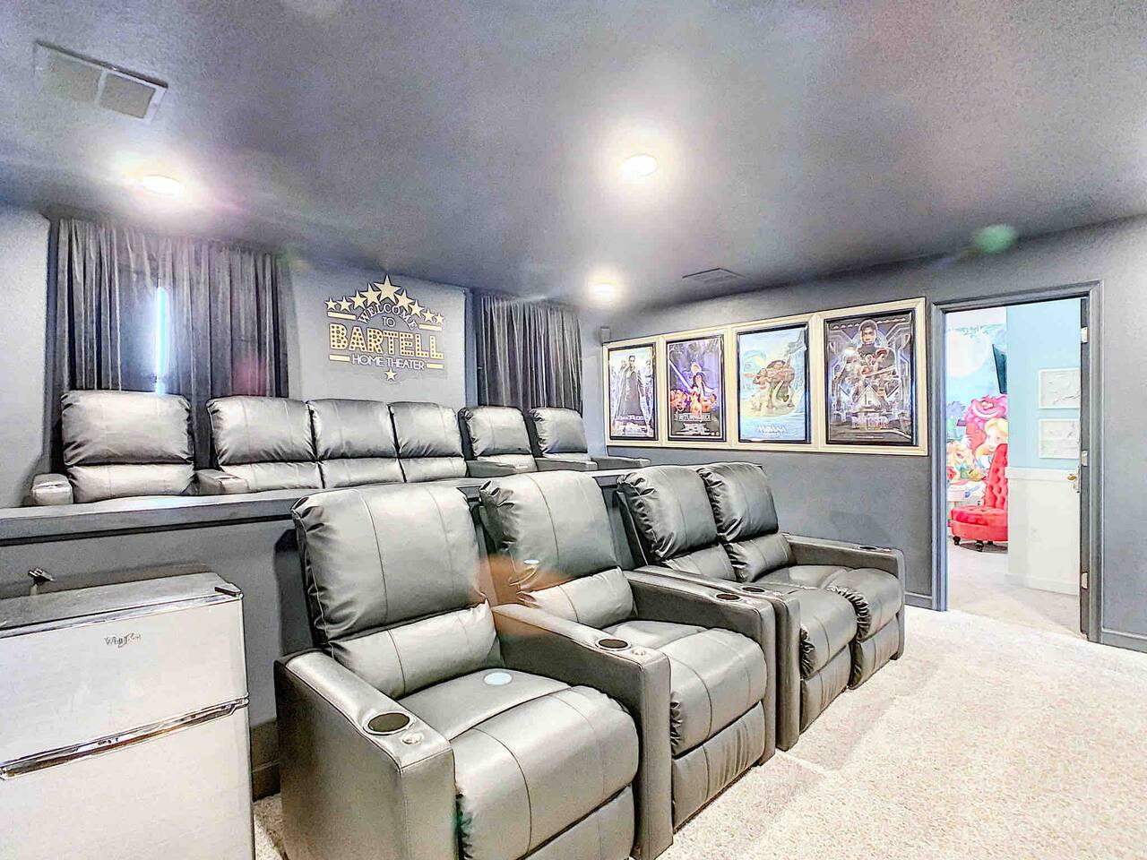 We believe a vacation is about making lifelong cherished memories—not just a place to stay or an experience. That's why we've thoughtfully provided exceptional amenities and personalized touches to make your stay magical and unforgettable. 🎀 PERSONALIZED WARM WELCOME •✨ Custom Greeting: Begin your stay with a personalized touch—your party’s name displayed on the door, celebrating special occasions like a first Disney trip, birthday, or retirement. We’ll reach out a week prior to plan this special detail. • 🎁 Welcome Gift: Upon arrival, discover a complimentary gift bag filled with tasty snacks to help you relax and settle in after your journey. •🍫Smores Kit: Delight in a special welcome surprise for the kids! Enjoy cozy evenings around two patio fire pits with our complimentary s’mores kit, perfect for creating sweet family memories under the stars. 🎉 FAMILY FUN AMENITIES • 🕵️♂️ Mickey Scavenger Hunt: Ignite your children's imagination with our exciting Mickey Scavenger Hunt! They'll love exploring every nook and cranny of the house in search of 23 hidden Mickeys painted throughout the walls. his interactive adventure ensures endless fun. Parents receive an answer key to ensure a fun and easy hunt for the whole family. • 🎅🏼 Holiday Decorations: To make your stay even more memorable, we decorate for the holidays, creating a festive atmosphere for you and your family to enjoy. From twinkling lights to a beautifully decorated tree, we bring the holiday spirit right to your home away from home. See photos • 🛝 Kids Zones - Trolls Haven Let your kids immerse themselves in a whimsical Trolls-inspired paradise where play and imagination come to life! Step into Branch’s Bunker, a magical space equipped with a full kitchen set, complete with play food, kitchenware, and endless possibilities for pretend cooking adventures. Kids can suit up in Branch’s survival vests to outwit the Bergens, creating exciting chase and tag games as they explore the interconnected Trolls bedroom/playroom and the Star Wars game room. For double the fun, they’ll have access to two thrilling slides: • One slide starts in the Trolls bedroom/playroom for nonstop fun. • The second slide, in the same room, transports them straight into the Star Wars game room for an intergalactic adventure! Trolls Haven is the ultimate kids’ zone where imagination knows no bounds and laughter echoes endlessly. • ☕ ME Time Discover your ultimate retreat in the house – a cozy cool spot designed just for relaxation. 🛋️ Whether you want to curl up with a good book or simply swing your cares away, this serene corner is perfect for unwinding and recharging. Sink into the comfort of the swinging seat, let the gentle motion soothe your soul, and take a moment to truly relax. It’s your space to escape, reflect, and enjoy some well-deserved “ME Time.” 🌿 • 🎥 Ultimate Home Theater Immerse yourself in cinematic bliss with stadium seating, an 86-inch 4K HD screen, and Dolby Atmos surround sound. Enjoy live sports, movies, and more with Spectrum TV or your streaming accounts. •🍿Commercial-Grade Popcorn Machine: Make movie nights extra special with our commercial-grade popcorn machine, delivering freshly popped, delicious snacks for an unforgettable cinematic experience. • 🌌 Ultimate Game Room Unleash the fun in this spectacular game room! Featuring a tube slide, gaming stations (Nintendo 64, Xbox, Atari, & 1UP arcade with 300+ games), ping pong, pool, and air hockey—adventures and unforgettable memories await! 🍽️ GOURMET CONVENIENCES •☕ Coffee/Tea/Hot Chocolate Bar: Start your day with a perfect cup from our Coffee/Tea/Hot Chocolate Bar. Choose between a Keurig, traditional 12-cup coffee maker, or Nespresso machine. We provide a variety of coffee grounds, flavored syrups, creamers, sugars, sugar substitutes, and tea bags for non-coffee drinkers. Additionally, enjoy non-caffeinated options for both coffee and tea enthusiasts. • 🧇Waffle Bar Extravaganza: Savor our complimentary Mickey waffle bar with all the toppings, including waffle mix, syrup, powdered sugar, cinnamon sugar, and chocolate chips. • 🍳 Chef’s Dream Kitchen: Cook like a pro with our fully stocked kitchen! Enjoy 33 spices, quality cookware, and appliances like crockpots. From gourmet meals to kid-friendly dishes, we’ve got everything you need. ✨ Luxury Comforts • 🏊♀️ Complimentary Pool & Spa Heating: A $30/day value included for free. • 🔥 Free Grill and Firepit Access: Make the most of your stay with **complimentary grill usage**—a perk that other hosts usually charge a daily fee. **We also provide a one-time propane tank reimbursement if you run out during your stay, ensuring your barbecue plans proceed without a hitch. • 🚿 Water Softening System: Enjoy softer water for cleaner linens, better-tasting drinks, and luxurious showers. • 🏖️ Relax and entertain in style! Enjoy the firepit, a 50-inch outdoor TV, and a cooler for your favorite drinks. Perfect for unforgettable evenings by the pool. • 🛏️ From the moment they were brand new, all our mattresses have been fully encased with premium protectors and topped with mattress toppers to ensure they stay clean and free from soiling. Our high-end, hotel-quality pillows have also been encased since new to guarantee both comfort and cleanliness. • 🧺 Dual LG washer and dryer setup—perfect for getting your laundry done quickly and efficiently. 🛋️ Comfort Essentials • 🧻 We go above and beyond to make your stay comfortable from the moment you arrive. Enjoy a robust supply of essentials, including: • Toilet paper (2 rolls per bathroom) • Bathroom soap • 1 roll of paper towels • Unlimited garbage bags • Unlimited dish soap • Unlimited dishwasher tabs • 3 laundry tabs with dryer sheets • Showers feature dispensers with unlimited shampoo, conditioner, and body wash. 