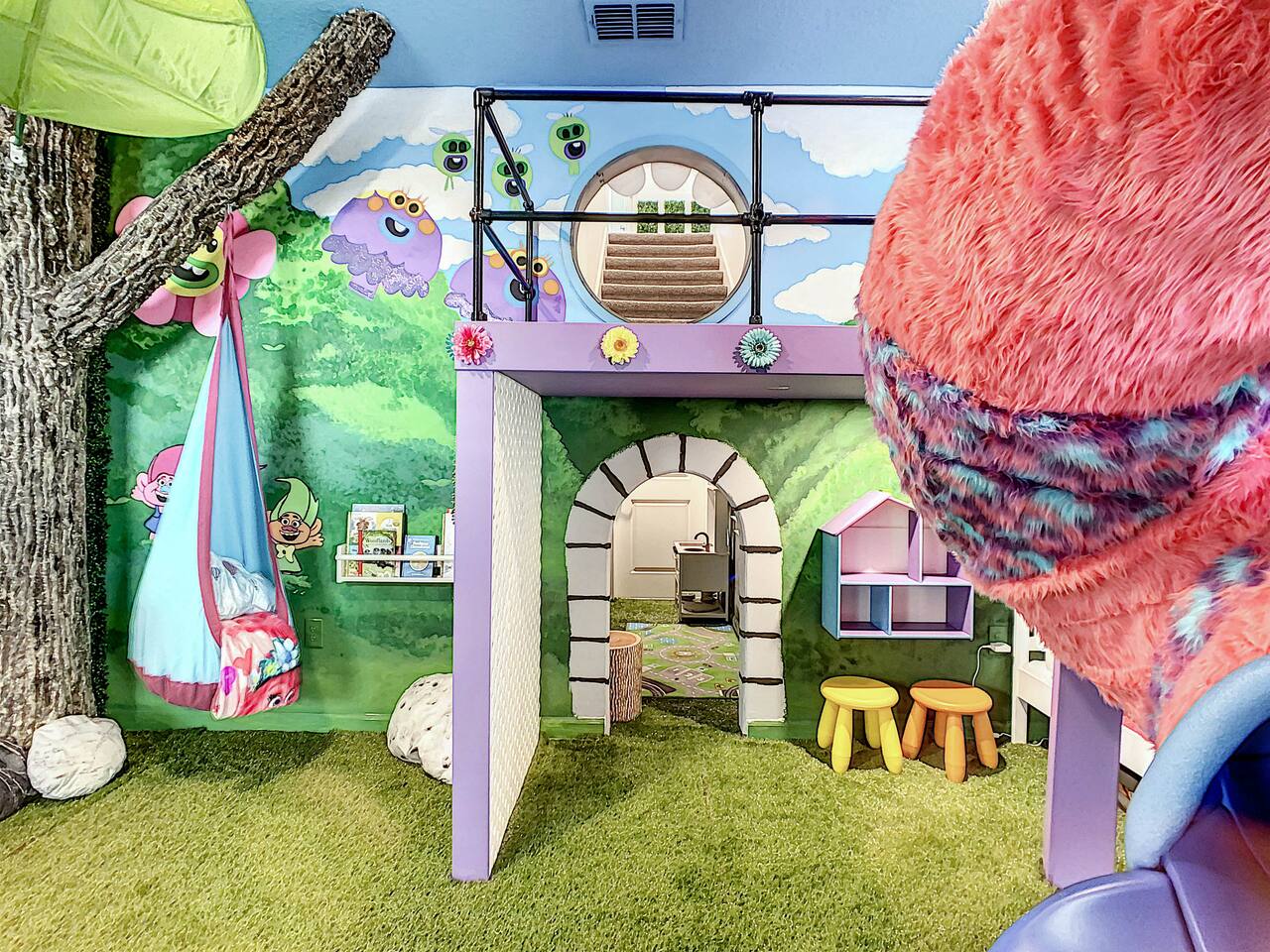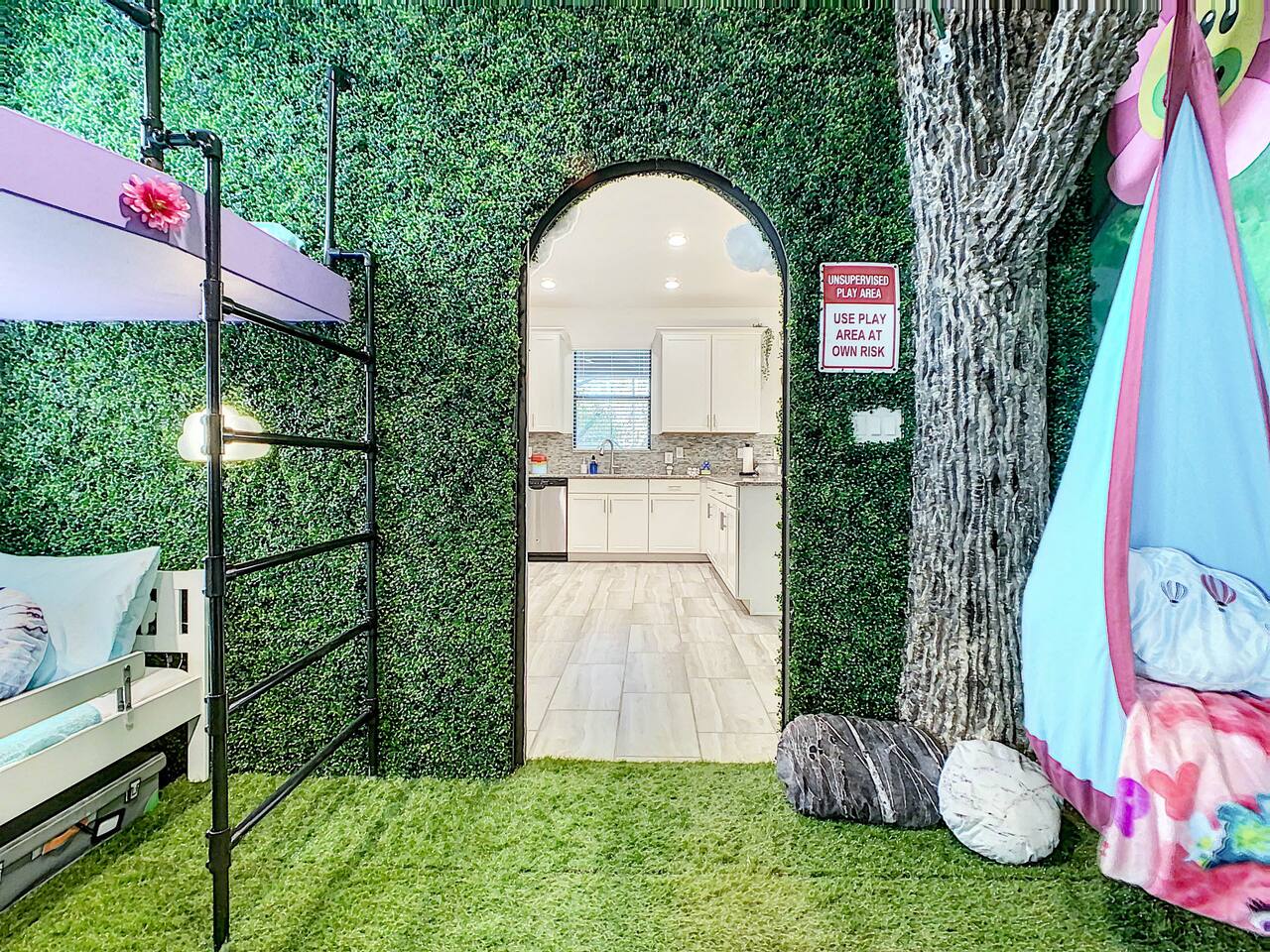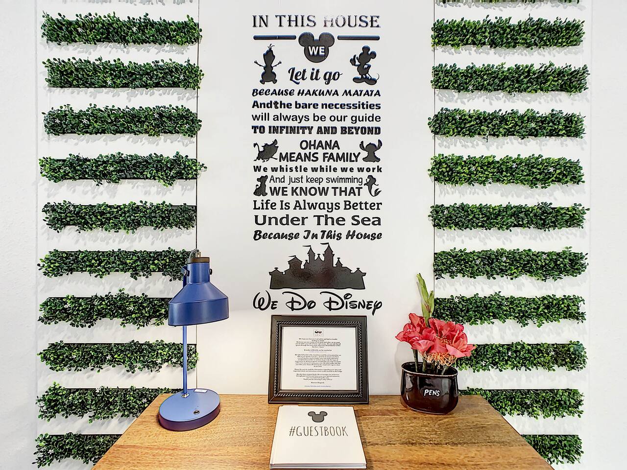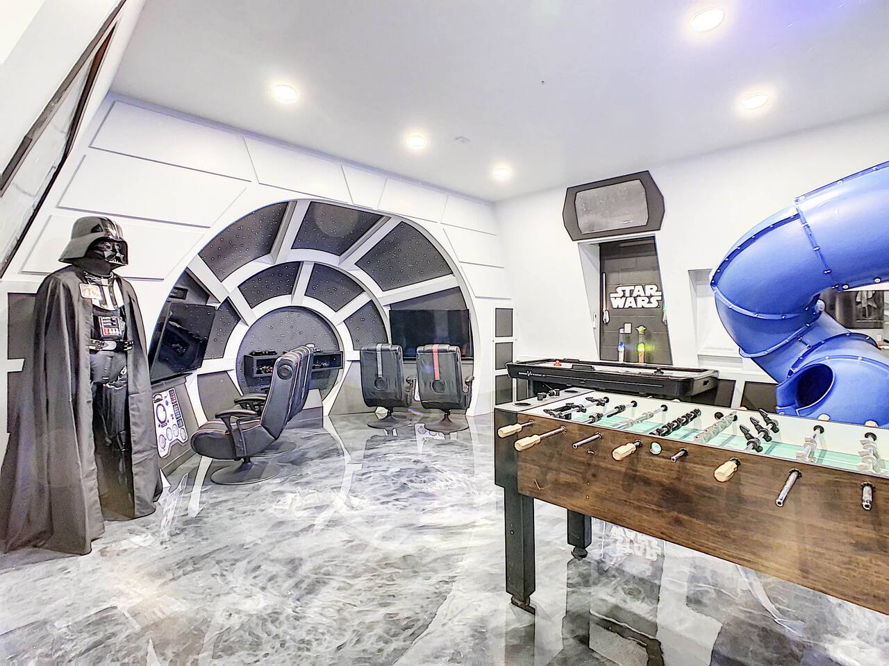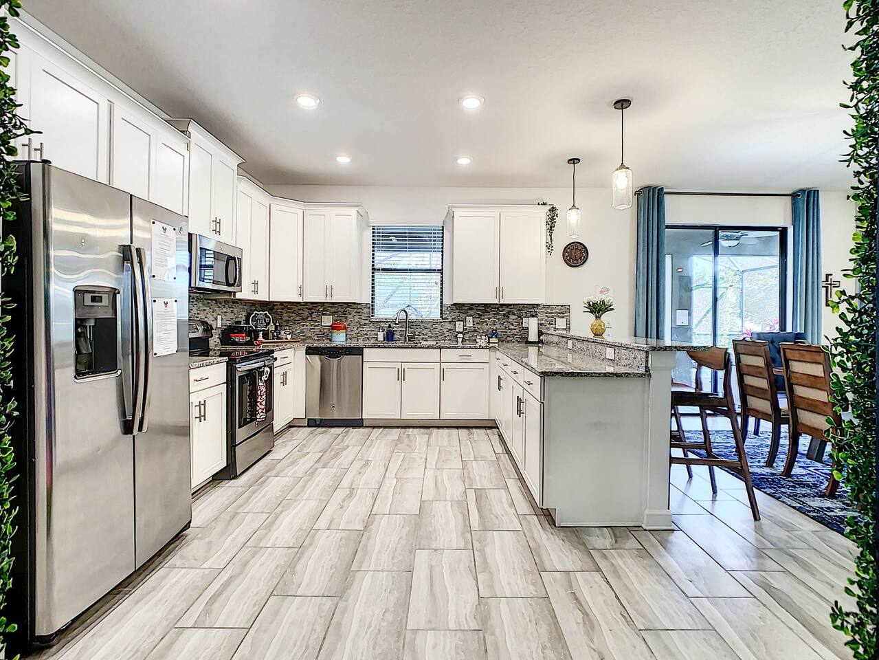 We believe a vacation is about making lifelong cherished memories—not just a place to stay or an experience. That's why we've thoughtfully provided exceptional amenities and personalized touches to make your stay magical and unforgettable. 🎀 PERSONALIZED WARM WELCOME •✨ Custom Greeting: Begin your stay with a personalized touch—your party’s name displayed on the door, celebrating special occasions like a first Disney trip, birthday, or retirement. We’ll reach out a week prior to plan this special detail. • 🎁 Welcome Gift: Upon arrival, discover a complimentary gift bag filled with tasty snacks to help you relax and settle in after your journey. •🍫Smores Kit: Delight in a special welcome surprise for the kids! Enjoy cozy evenings around two patio fire pits with our complimentary s’mores kit, perfect for creating sweet family memories under the stars. 🎉 FAMILY FUN AMENITIES • 🕵️♂️ Mickey Scavenger Hunt: Ignite your children's imagination with our exciting Mickey Scavenger Hunt! They'll love exploring every nook and cranny of the house in search of 23 hidden Mickeys painted throughout the walls. his interactive adventure ensures endless fun. Parents receive an answer key to ensure a fun and easy hunt for the whole family. • 🎅🏼 Holiday Decorations: To make your stay even more memorable, we decorate for the holidays, creating a festive atmosphere for you and your family to enjoy. From twinkling lights to a beautifully decorated tree, we bring the holiday spirit right to your home away from home. See photos • 🛝 Kids Zones - Trolls Haven Let your kids immerse themselves in a whimsical Trolls-inspired paradise where play and imagination come to life! Step into Branch’s Bunker, a magical space equipped with a full kitchen set, complete with play food, kitchenware, and endless possibilities for pretend cooking adventures. Kids can suit up in Branch’s survival vests to outwit the Bergens, creating exciting chase and tag games as they explore the interconnected Trolls bedroom/playroom and the Star Wars game room. For double the fun, they’ll have access to two thrilling slides: • One slide starts in the Trolls bedroom/playroom for nonstop fun. • The second slide, in the same room, transports them straight into the Star Wars game room for an intergalactic adventure! Trolls Haven is the ultimate kids’ zone where imagination knows no bounds and laughter echoes endlessly. • ☕ ME Time Discover your ultimate retreat in the house – a cozy cool spot designed just for relaxation. 🛋️ Whether you want to curl up with a good book or simply swing your cares away, this serene corner is perfect for unwinding and recharging. Sink into the comfort of the swinging seat, let the gentle motion soothe your soul, and take a moment to truly relax. It’s your space to escape, reflect, and enjoy some well-deserved “ME Time.” 🌿 • 🎥 Ultimate Home Theater Immerse yourself in cinematic bliss with stadium seating, an 86-inch 4K HD screen, and Dolby Atmos surround sound. Enjoy live sports, movies, and more with Spectrum TV or your streaming accounts. •🍿Commercial-Grade Popcorn Machine: Make movie nights extra special with our commercial-grade popcorn machine, delivering freshly popped, delicious snacks for an unforgettable cinematic experience. • 🌌 Ultimate Game Room Unleash the fun in this spectacular game room! Featuring a tube slide, gaming stations (Nintendo 64, Xbox, Atari, & 1UP arcade with 300+ games), ping pong, pool, and air hockey—adventures and unforgettable memories await! 🍽️ GOURMET CONVENIENCES •☕ Coffee/Tea/Hot Chocolate Bar: Start your day with a perfect cup from our Coffee/Tea/Hot Chocolate Bar. Choose between a Keurig, traditional 12-cup coffee maker, or Nespresso machine. We provide a variety of coffee grounds, flavored syrups, creamers, sugars, sugar substitutes, and tea bags for non-coffee drinkers. Additionally, enjoy non-caffeinated options for both coffee and tea enthusiasts. • 🧇Waffle Bar Extravaganza: Savor our complimentary Mickey waffle bar with all the toppings, including waffle mix, syrup, powdered sugar, cinnamon sugar, and chocolate chips. • 🍳 Chef’s Dream Kitchen: Cook like a pro with our fully stocked kitchen! Enjoy 33 spices, quality cookware, and appliances like crockpots. From gourmet meals to kid-friendly dishes, we’ve got everything you need. ✨ Luxury Comforts • 🏊♀️ Complimentary Pool & Spa Heating: A $30/day value included for free. • 🔥 Free Grill and Firepit Access: Make the most of your stay with **complimentary grill usage**—a perk that other hosts usually charge a daily fee. **We also provide a one-time propane tank reimbursement if you run out during your stay, ensuring your barbecue plans proceed without a hitch. • 🚿 Water Softening System: Enjoy softer water for cleaner linens, better-tasting drinks, and luxurious showers. • 🏖️ Relax and entertain in style! Enjoy the firepit, a 50-inch outdoor TV, and a cooler for your favorite drinks. Perfect for unforgettable evenings by the pool. • 🛏️ From the moment they were brand new, all our mattresses have been fully encased with premium protectors and topped with mattress toppers to ensure they stay clean and free from soiling. Our high-end, hotel-quality pillows have also been encased since new to guarantee both comfort and cleanliness. • 🧺 Dual LG washer and dryer setup—perfect for getting your laundry done quickly and efficiently. 🛋️ Comfort Essentials • 🧻 We go above and beyond to make your stay comfortable from the moment you arrive. Enjoy a robust supply of essentials, including: • Toilet paper (2 rolls per bathroom) • Bathroom soap • 1 roll of paper towels • Unlimited garbage bags • Unlimited dish soap • Unlimited dishwasher tabs • 3 laundry tabs with dryer sheets • Showers feature dispensers with unlimited shampoo, conditioner, and body wash. 