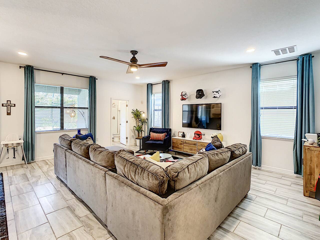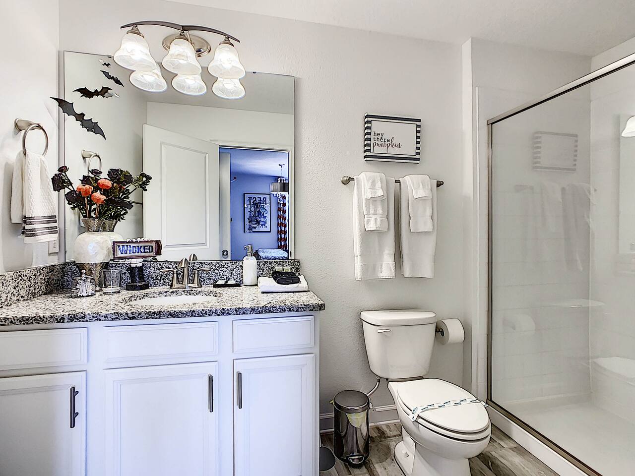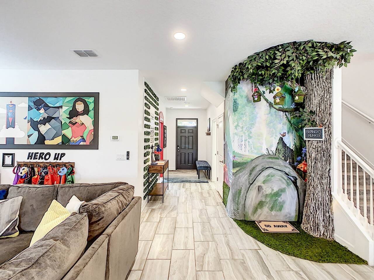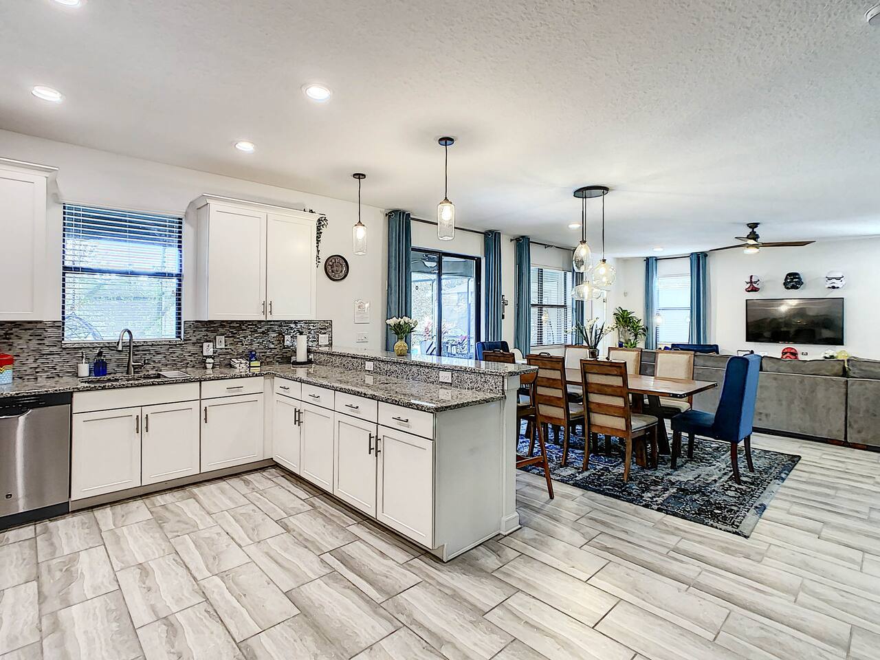We believe a vacation is about making lifelong cherished memories—not just a place to stay or an experience. That's why we've thoughtfully provided exceptional amenities and personalized touches to make your stay magical and unforgettable. 🎀 PERSONALIZED WARM WELCOME •✨ Custom Greeting: Begin your stay with a personalized touch—your party’s name displayed on the door, celebrating special occasions like a first Disney trip, birthday, or retirement. We’ll reach out a week prior to plan this special detail. • 🎁 Welcome Gift: Upon arrival, discover a complimentary gift bag filled with tasty snacks to help you relax and settle in after your journey. •🍫Smores Kit: Delight in a special welcome surprise for the kids! Enjoy cozy evenings around two patio fire pits with our complimentary s’mores kit, perfect for creating sweet family memories under the stars. 🎉 FAMILY FUN AMENITIES • 🕵️♂️ Mickey Scavenger Hunt: Ignite your children's imagination with our exciting Mickey Scavenger Hunt! They'll love exploring every nook and cranny of the house in search of 23 hidden Mickeys painted throughout the walls. his interactive adventure ensures endless fun. Parents receive an answer key to ensure a fun and easy hunt for the whole family. • 🎅🏼 Holiday Decorations: To make your stay even more memorable, we decorate for the holidays, creating a festive atmosphere for you and your family to enjoy. From twinkling lights to a beautifully decorated tree, we bring the holiday spirit right to your home away from home. See photos • 🛝 Kids Zones - Trolls Haven Let your kids immerse themselves in a whimsical Trolls-inspired paradise where play and imagination come to life! Step into Branch’s Bunker, a magical space equipped with a full kitchen set, complete with play food, kitchenware, and endless possibilities for pretend cooking adventures. Kids can suit up in Branch’s survival vests to outwit the Bergens, creating exciting chase and tag games as they explore the interconnected Trolls bedroom/playroom and the Star Wars game room. For double the fun, they’ll have access to two thrilling slides: • One slide starts in the Trolls bedroom/playroom for nonstop fun. • The second slide, in the same room, transports them straight into the Star Wars game room for an intergalactic adventure! Trolls Haven is the ultimate kids’ zone where imagination knows no bounds and laughter echoes endlessly. • ☕ ME Time Discover your ultimate retreat in the house – a cozy cool spot designed just for relaxation. 🛋️ Whether you want to curl up with a good book or simply swing your cares away, this serene corner is perfect for unwinding and recharging. Sink into the comfort of the swinging seat, let the gentle motion soothe your soul, and take a moment to truly relax. It’s your space to escape, reflect, and enjoy some well-deserved “ME Time.” 🌿 • 🎥 Ultimate Home Theater Immerse yourself in cinematic bliss with stadium seating, an 86-inch 4K HD screen, and Dolby Atmos surround sound. Enjoy live sports, movies, and more with Spectrum TV or your streaming accounts. •🍿Commercial-Grade Popcorn Machine: Make movie nights extra special with our commercial-grade popcorn machine, delivering freshly popped, delicious snacks for an unforgettable cinematic experience. • 🌌 Ultimate Game Room Unleash the fun in this spectacular game room! Featuring a tube slide, gaming stations (Nintendo 64, Xbox, Atari, & 1UP arcade with 300+ games), ping pong, pool, and air hockey—adventures and unforgettable memories await! 🍽️ GOURMET CONVENIENCES •☕ Coffee/Tea/Hot Chocolate Bar: Start your day with a perfect cup from our Coffee/Tea/Hot Chocolate Bar. Choose between a Keurig, traditional 12-cup coffee maker, or Nespresso machine. We provide a variety of coffee grounds, flavored syrups, creamers, sugars, sugar substitutes, and tea bags for non-coffee drinkers. Additionally, enjoy non-caffeinated options for both coffee and tea enthusiasts. • 🧇Waffle Bar Extravaganza: Savor our complimentary Mickey waffle bar with all the toppings, including waffle mix, syrup, powdered sugar, cinnamon sugar, and chocolate chips. • 🍳 Chef’s Dream Kitchen: Cook like a pro with our fully stocked kitchen! Enjoy 33 spices, quality cookware, and appliances like crockpots. From gourmet meals to kid-friendly dishes, we’ve got everything you need. ✨ Luxury Comforts • 🏊♀️ Complimentary Pool & Spa Heating: A $30/day value included for free. • 🔥 Free Grill and Firepit Access: Make the most of your stay with **complimentary grill usage**—a perk that other hosts usually charge a daily fee. **We also provide a one-time propane tank reimbursement if you run out during your stay, ensuring your barbecue plans proceed without a hitch. • 🚿 Water Softening System: Enjoy softer water for cleaner linens, better-tasting drinks, and luxurious showers. • 🏖️ Relax and entertain in style! Enjoy the firepit, a 50-inch outdoor TV, and a cooler for your favorite drinks. Perfect for unforgettable evenings by the pool. • 🛏️ From the moment they were brand new, all our mattresses have been fully encased with premium protectors and topped with mattress toppers to ensure they stay clean and free from soiling. Our high-end, hotel-quality pillows have also been encased since new to guarantee both comfort and cleanliness. • 🧺 Dual LG washer and dryer setup—perfect for getting your laundry done quickly and efficiently. 🛋️ Comfort Essentials • 🧻 We go above and beyond to make your stay comfortable from the moment you arrive. Enjoy a robust supply of essentials, including: • Toilet paper (2 rolls per bathroom) • Bathroom soap • 1 roll of paper towels • Unlimited garbage bags • Unlimited dish soap • Unlimited dishwasher tabs • 3 laundry tabs with dryer sheets • Showers feature dispensers with unlimited shampoo, conditioner, and body wash. 