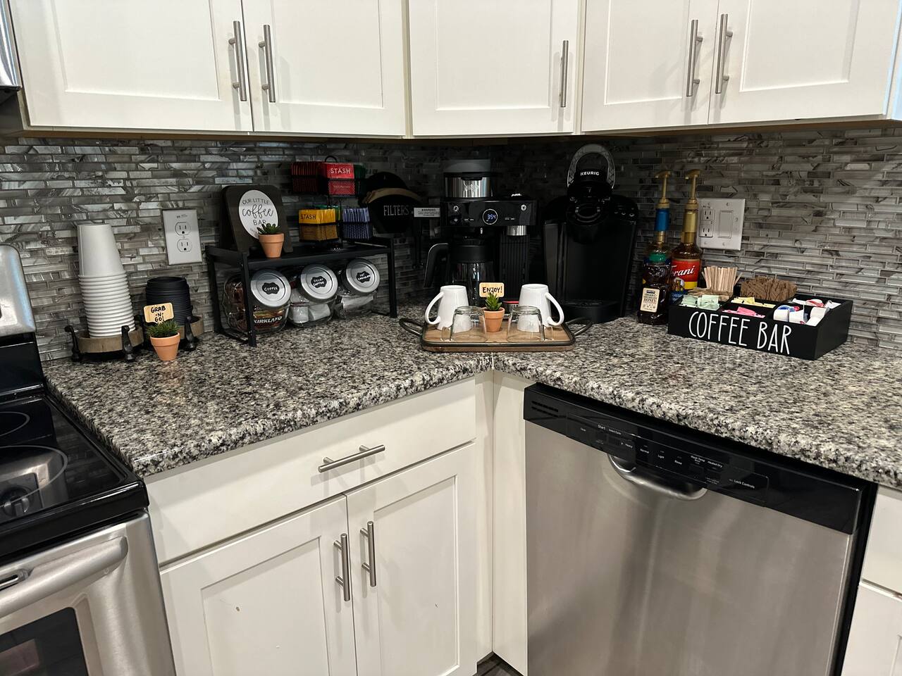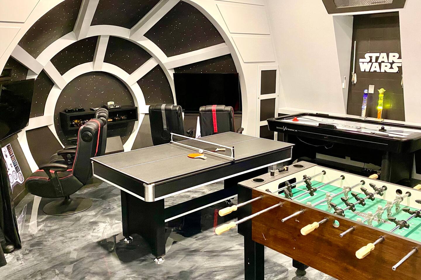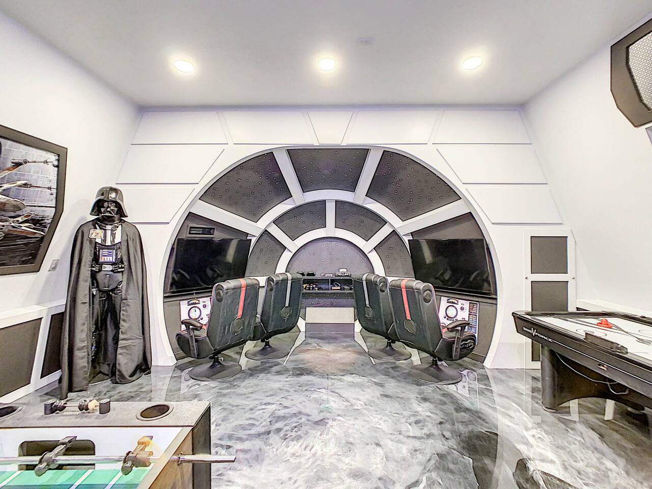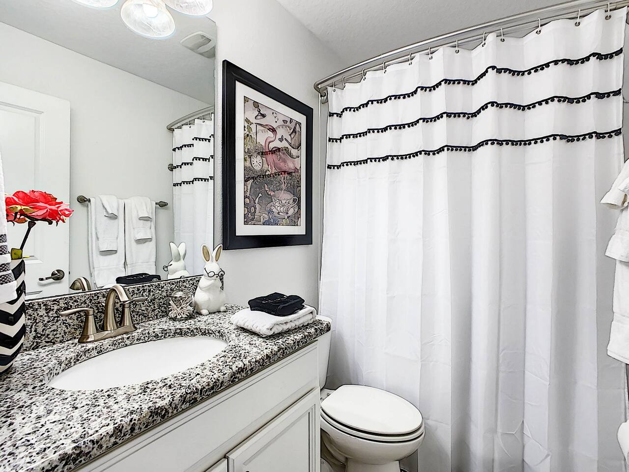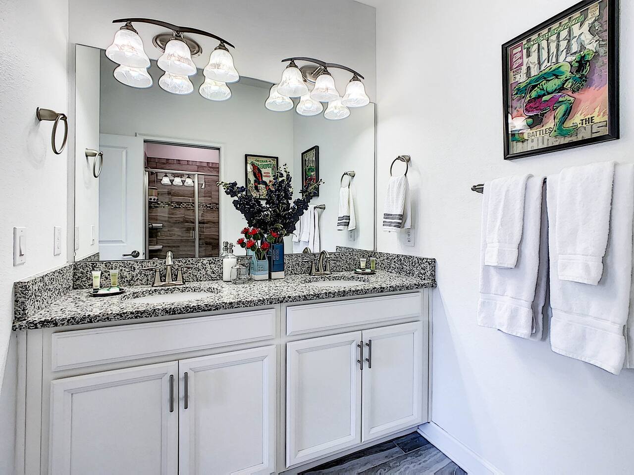 We believe a vacation is about making lifelong cherished memories—not just a place to stay or an experience. That's why we've thoughtfully provided exceptional amenities and personalized touches to make your stay magical and unforgettable. 🎀 PERSONALIZED WARM WELCOME •✨ Custom Greeting: Begin your stay with a personalized touch—your party’s name displayed on the door, celebrating special occasions like a first Disney trip, birthday, or retirement. We’ll reach out a week prior to plan this special detail. • 🎁 Welcome Gift: Upon arrival, discover a complimentary gift bag filled with tasty snacks to help you relax and settle in after your journey. •🍫Smores Kit: Delight in a special welcome surprise for the kids! Enjoy cozy evenings around two patio fire pits with our complimentary s’mores kit, perfect for creating sweet family memories under the stars. 🎉 FAMILY FUN AMENITIES • 🕵️♂️ Mickey Scavenger Hunt: Ignite your children's imagination with our exciting Mickey Scavenger Hunt! They'll love exploring every nook and cranny of the house in search of 23 hidden Mickeys painted throughout the walls. his interactive adventure ensures endless fun. Parents receive an answer key to ensure a fun and easy hunt for the whole family. • 🎅🏼 Holiday Decorations: To make your stay even more memorable, we decorate for the holidays, creating a festive atmosphere for you and your family to enjoy. From twinkling lights to a beautifully decorated tree, we bring the holiday spirit right to your home away from home. See photos • 🛝 Kids Zones - Trolls Haven Let your kids immerse themselves in a whimsical Trolls-inspired paradise where play and imagination come to life! Step into Branch’s Bunker, a magical space equipped with a full kitchen set, complete with play food, kitchenware, and endless possibilities for pretend cooking adventures. Kids can suit up in Branch’s survival vests to outwit the Bergens, creating exciting chase and tag games as they explore the interconnected Trolls bedroom/playroom and the Star Wars game room. For double the fun, they’ll have access to two thrilling slides: • One slide starts in the Trolls bedroom/playroom for nonstop fun. • The second slide, in the same room, transports them straight into the Star Wars game room for an intergalactic adventure! Trolls Haven is the ultimate kids’ zone where imagination knows no bounds and laughter echoes endlessly. • ☕ ME Time Discover your ultimate retreat in the house – a cozy cool spot designed just for relaxation. 🛋️ Whether you want to curl up with a good book or simply swing your cares away, this serene corner is perfect for unwinding and recharging. Sink into the comfort of the swinging seat, let the gentle motion soothe your soul, and take a moment to truly relax. It’s your space to escape, reflect, and enjoy some well-deserved “ME Time.” 🌿 • 🎥 Ultimate Home Theater Immerse yourself in cinematic bliss with stadium seating, an 86-inch 4K HD screen, and Dolby Atmos surround sound. Enjoy live sports, movies, and more with Spectrum TV or your streaming accounts. •🍿Commercial-Grade Popcorn Machine: Make movie nights extra special with our commercial-grade popcorn machine, delivering freshly popped, delicious snacks for an unforgettable cinematic experience. • 🌌 Ultimate Game Room Unleash the fun in this spectacular game room! Featuring a tube slide, gaming stations (Nintendo 64, Xbox, Atari, & 1UP arcade with 300+ games), ping pong, pool, and air hockey—adventures and unforgettable memories await! 🍽️ GOURMET CONVENIENCES •☕ Coffee/Tea/Hot Chocolate Bar: Start your day with a perfect cup from our Coffee/Tea/Hot Chocolate Bar. Choose between a Keurig, traditional 12-cup coffee maker, or Nespresso machine. We provide a variety of coffee grounds, flavored syrups, creamers, sugars, sugar substitutes, and tea bags for non-coffee drinkers. Additionally, enjoy non-caffeinated options for both coffee and tea enthusiasts. • 🧇Waffle Bar Extravaganza: Savor our complimentary Mickey waffle bar with all the toppings, including waffle mix, syrup, powdered sugar, cinnamon sugar, and chocolate chips. • 🍳 Chef’s Dream Kitchen: Cook like a pro with our fully stocked kitchen! Enjoy 33 spices, quality cookware, and appliances like crockpots. From gourmet meals to kid-friendly dishes, we’ve got everything you need. ✨ Luxury Comforts • 🏊♀️ Complimentary Pool & Spa Heating: A $30/day value included for free. • 🔥 Free Grill and Firepit Access: Make the most of your stay with **complimentary grill usage**—a perk that other hosts usually charge a daily fee. **We also provide a one-time propane tank reimbursement if you run out during your stay, ensuring your barbecue plans proceed without a hitch. • 🚿 Water Softening System: Enjoy softer water for cleaner linens, better-tasting drinks, and luxurious showers. • 🏖️ Relax and entertain in style! Enjoy the firepit, a 50-inch outdoor TV, and a cooler for your favorite drinks. Perfect for unforgettable evenings by the pool. • 🛏️ From the moment they were brand new, all our mattresses have been fully encased with premium protectors and topped with mattress toppers to ensure they stay clean and free from soiling. Our high-end, hotel-quality pillows have also been encased since new to guarantee both comfort and cleanliness. • 🧺 Dual LG washer and dryer setup—perfect for getting your laundry done quickly and efficiently. 🛋️ Comfort Essentials • 🧻 We go above and beyond to make your stay comfortable from the moment you arrive. Enjoy a robust supply of essentials, including: • Toilet paper (2 rolls per bathroom) • Bathroom soap • 1 roll of paper towels • Unlimited garbage bags • Unlimited dish soap • Unlimited dishwasher tabs • 3 laundry tabs with dryer sheets • Showers feature dispensers with unlimited shampoo, conditioner, and body wash. 