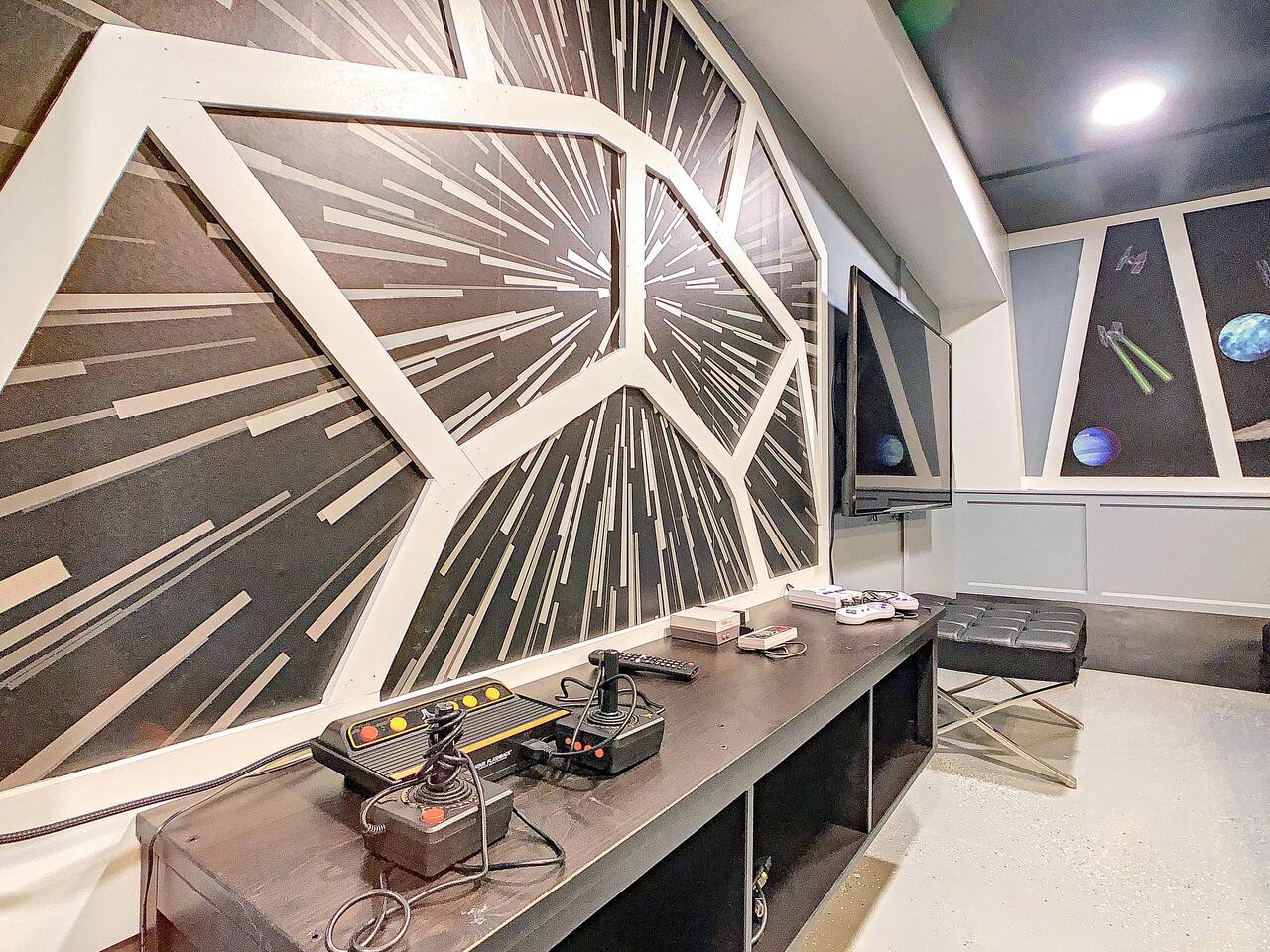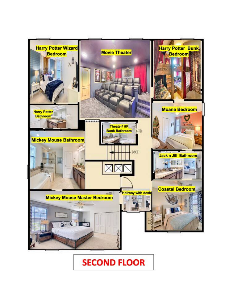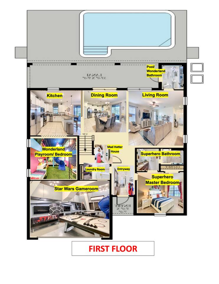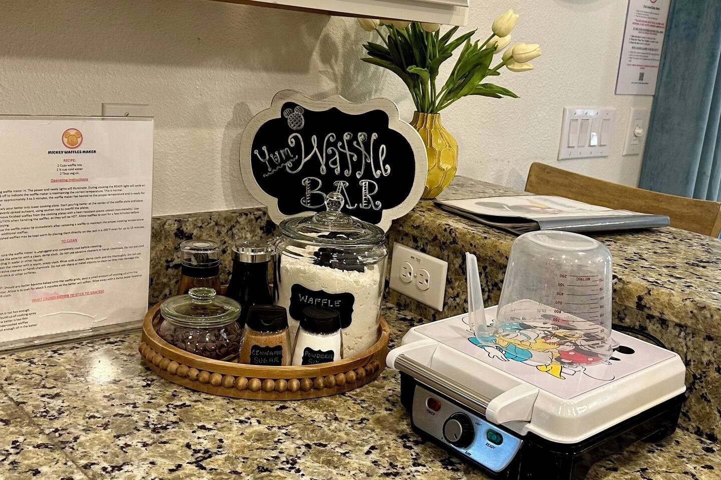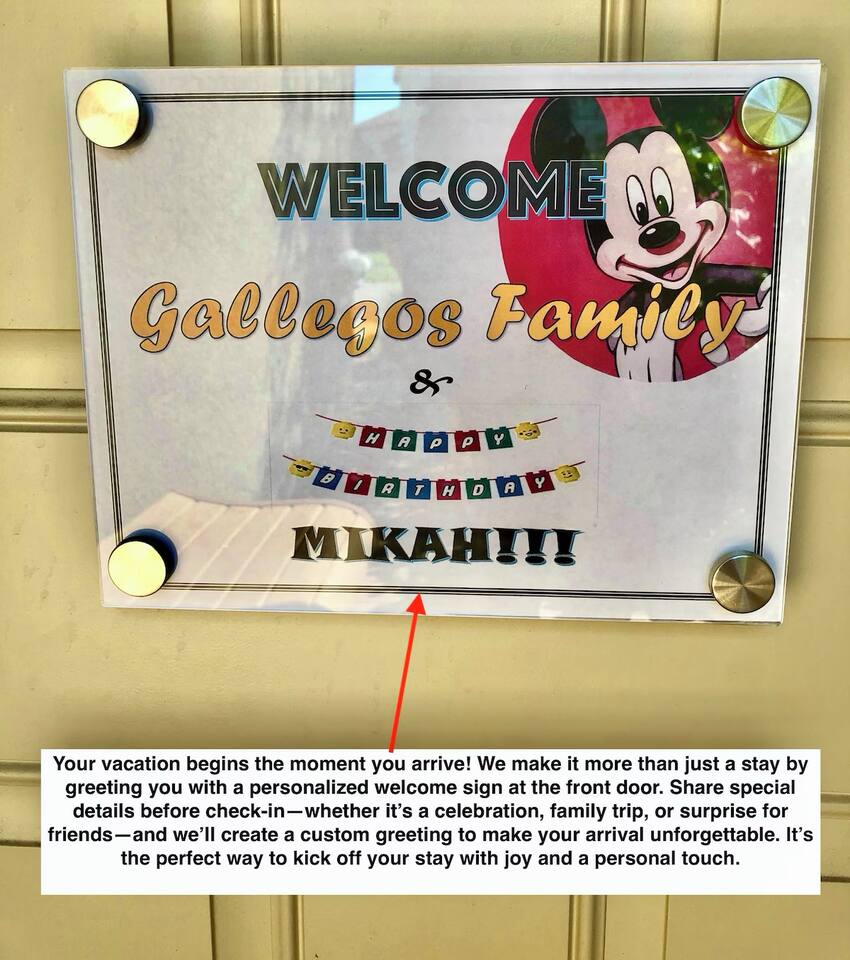 We believe a vacation is about making lifelong cherished memories—not just a place to stay or an experience. That's why we've thoughtfully provided exceptional amenities and personalized touches to make your stay magical and unforgettable. 🎀 PERSONALIZED WARM WELCOME •✨ Custom Greeting: Begin your stay with a personalized touch—your party’s name displayed on the door, celebrating special occasions like a first Disney trip, birthday, or retirement. We’ll reach out a week prior to plan this special detail. • 🎁 Welcome Gift: Upon arrival, discover a complimentary gift bag filled with tasty snacks to help you relax and settle in after your journey. •🍫Smores Kit: Delight in a special welcome surprise for the kids! Enjoy cozy evenings around two patio fire pits with our complimentary s’mores kit, perfect for creating sweet family memories under the stars. 🎉 FAMILY FUN AMENITIES • 🕵️♂️ Mickey Scavenger Hunt: Ignite your children's imagination with our exciting Mickey Scavenger Hunt! They'll love exploring every nook and cranny of the house in search of 23 hidden Mickeys painted throughout the walls. his interactive adventure ensures endless fun. Parents receive an answer key to ensure a fun and easy hunt for the whole family. • 🎅🏼 Holiday Decorations: To make your stay even more memorable, we decorate for the holidays, creating a festive atmosphere for you and your family to enjoy. From twinkling lights to a beautifully decorated tree, we bring the holiday spirit right to your home away from home. See photos • 🛝 Kids Zones - Wonderland Haven Delight your children in our vibrant, magical space that sparks imagination and entertains for hours. This unique retreat offers: • Mad Hatter’s House: A playful kitchen for pretend meals and imaginative adventures. • Interactive Wonderland Playroom: Slide into fun and explore further in the Star Wars game room. • Endless Entertainment: Enjoy a dollhouse, games, train station, coloring supplies, and more creative outlets. Every whimsical touch ensures unforgettable moments for young adventurers. • 🎥 Ultimate Home Theater Immerse yourself in cinematic bliss with stadium seating, an 86-inch 4K HD screen, and Dolby Atmos surround sound. Enjoy live sports, movies, and more with Spectrum TV or your streaming accounts. •🍿Commercial-Grade Popcorn Machine: Make movie nights extra special with our commercial-grade popcorn machine, delivering freshly popped, delicious snacks for an unforgettable cinematic experience. • 🌌 Ultimate Game Room The fun doesn’t stop in our game room, which is designed for both kids and adults to enjoy. Highlights include: • A tube slide connecting from the Wonderland playroom for an exciting entry. • Gaming stations equipped with Xbox, Atari, and Super NES, and a 1UP arcade featuring over 300 classic games. • A compact 3-foot pool table, perfectly sized for kids to enjoy. 🍽️ GOURMET CONVENIENCES •☕ Coffee/Tea/Hot Chocolate Bar: Start your day with a perfect cup from our Coffee/Tea/Hot Chocolate Bar. Choose between a Keurig, traditional 12-cup coffee maker, or Nespresso machine. We provide a variety of coffee grounds, flavored syrups, creamers, sugars, sugar substitutes, and tea bags for non-coffee drinkers. Additionally, enjoy non-caffeinated options for both coffee and tea enthusiasts. • 🧇Waffle Bar Extravaganza: Savor our complimentary Mickey waffle bar with all the toppings, including waffle mix, syrup, powdered sugar, cinnamon sugar, and chocolate chips. • 🍳 Chef’s Dream Kitchen: Cook like a pro with our fully stocked kitchen! Enjoy 33 spices, quality cookware, and appliances like crockpots. From gourmet meals to kid-friendly dishes, we’ve got everything you need. ✨ Luxury Comforts • 🏊♀️ Complimentary Pool & Spa Heating: A $30/day value included for free. • 🔥 Free Grill and Firepit Access: Make the most of your stay with **complimentary grill usage**—a perk that other hosts usually charge a daily fee. **We also provide a one-time propane tank reimbursement if you run out during your stay, ensuring your barbecue plans proceed without a hitch. • 🚿 Water Softening System: Enjoy softer water for cleaner linens, better-tasting drinks, and luxurious showers. • 🏖️ Relax and entertain in style! Enjoy the firepit, a 50-inch outdoor TV, and a cooler for your favorite drinks. Perfect for unforgettable evenings by the pool. • 🛏️ From the moment they were brand new, all our mattresses have been fully encased with premium protectors and topped with mattress toppers to ensure they stay clean and free from soiling. Our high-end, hotel-quality pillows have also been encased since new to guarantee both comfort and cleanliness. • 🧺 Dual LG washer and dryer setup—perfect for getting your laundry done quickly and efficiently. 🛋️ Comfort Essentials • 🧻 We go above and beyond to make your stay comfortable from the moment you arrive. Enjoy a robust supply of essentials, including: • Toilet paper (2 rolls per bathroom) • Bathroom soap • 1 roll of paper towels • Unlimited garbage bags • Unlimited dish soap • Unlimited dishwasher tabs • 3 laundry tabs with dryer sheets • Showers feature dispensers with unlimited shampoo, conditioner, and body wash. Extras include Q-tips and makeup washcloths. 💎 Exceptional Service As Superhosts, we take immense pride in our numerous positive reviews, showcasing our unwavering commitment to providing you with a seamless experience from booking through your entire stay. We personally own and manage all our homes to ensure every detail is flawless. Being local, we guarantee prompt responses and can swiftly visit the property to address any concerns, offering you peace of mind and a smooth vacation experience. What sets us apart is our dedication to simplicity. We've crafted straightforward check-in instructions for your convenience, including our "Guest 