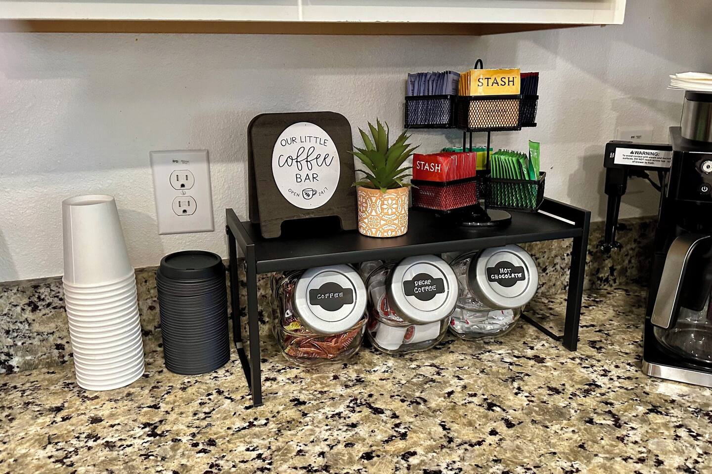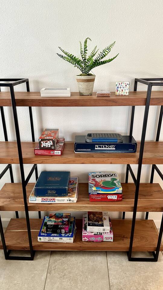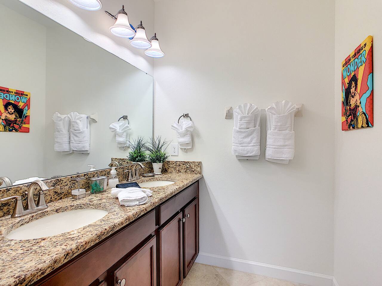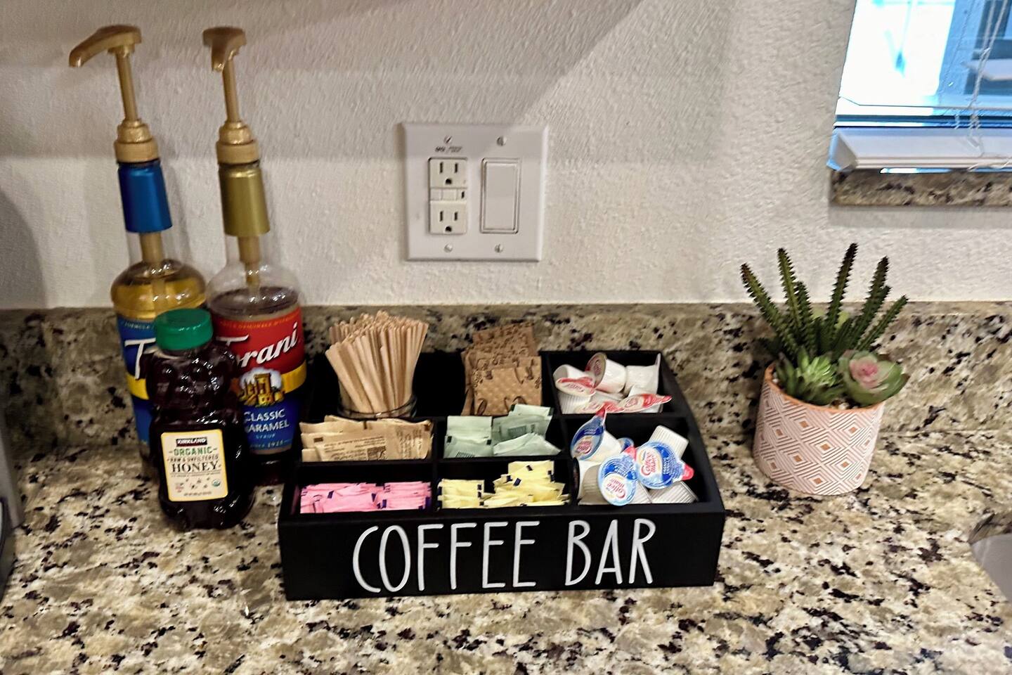 We believe a vacation is about making lifelong cherished memories—not just a place to stay or an experience. That's why we've thoughtfully provided exceptional amenities and personalized touches to make your stay magical and unforgettable. 🎀 PERSONALIZED WARM WELCOME •✨ Custom Greeting: Begin your stay with a personalized touch—your party’s name displayed on the door, celebrating special occasions like a first Disney trip, birthday, or retirement. We’ll reach out a week prior to plan this special detail. • 🎁 Welcome Gift: Upon arrival, discover a complimentary gift bag filled with tasty snacks to help you relax and settle in after your journey. •🍫Smores Kit: Delight in a special welcome surprise for the kids! Enjoy cozy evenings around two patio fire pits with our complimentary s’mores kit, perfect for creating sweet family memories under the stars. 🎉 FAMILY FUN AMENITIES • 🕵️♂️ Mickey Scavenger Hunt: Ignite your children's imagination with our exciting Mickey Scavenger Hunt! They'll love exploring every nook and cranny of the house in search of 23 hidden Mickeys painted throughout the walls. his interactive adventure ensures endless fun. Parents receive an answer key to ensure a fun and easy hunt for the whole family. • 🎅🏼 Holiday Decorations: To make your stay even more memorable, we decorate for the holidays, creating a festive atmosphere for you and your family to enjoy. From twinkling lights to a beautifully decorated tree, we bring the holiday spirit right to your home away from home. See photos • 🛝 Kids Zones - Wonderland Haven Delight your children in our vibrant, magical space that sparks imagination and entertains for hours. This unique retreat offers: • Mad Hatter’s House: A playful kitchen for pretend meals and imaginative adventures. • Interactive Wonderland Playroom: Slide into fun and explore further in the Star Wars game room. • Endless Entertainment: Enjoy a dollhouse, games, train station, coloring supplies, and more creative outlets. Every whimsical touch ensures unforgettable moments for young adventurers. • 🎥 Ultimate Home Theater Immerse yourself in cinematic bliss with stadium seating, an 86-inch 4K HD screen, and Dolby Atmos surround sound. Enjoy live sports, movies, and more with Spectrum TV or your streaming accounts. •🍿Commercial-Grade Popcorn Machine: Make movie nights extra special with our commercial-grade popcorn machine, delivering freshly popped, delicious snacks for an unforgettable cinematic experience. • 🌌 Ultimate Game Room The fun doesn’t stop in our game room, which is designed for both kids and adults to enjoy. Highlights include: • A tube slide connecting from the Wonderland playroom for an exciting entry. • Gaming stations equipped with Xbox, Atari, and Super NES, and a 1UP arcade featuring over 300 classic games. • A compact 3-foot pool table, perfectly sized for kids to enjoy. 🍽️ GOURMET CONVENIENCES •☕ Coffee/Tea/Hot Chocolate Bar: Start your day with a perfect cup from our Coffee/Tea/Hot Chocolate Bar. Choose between a Keurig, traditional 12-cup coffee maker, or Nespresso machine. We provide a variety of coffee grounds, flavored syrups, creamers, sugars, sugar substitutes, and tea bags for non-coffee drinkers. Additionally, enjoy non-caffeinated options for both coffee and tea enthusiasts. • 🧇Waffle Bar Extravaganza: Savor our complimentary Mickey waffle bar with all the toppings, including waffle mix, syrup, powdered sugar, cinnamon sugar, and chocolate chips. • 🍳 Chef’s Dream Kitchen: Cook like a pro with our fully stocked kitchen! Enjoy 33 spices, quality cookware, and appliances like crockpots. From gourmet meals to kid-friendly dishes, we’ve got everything you need. ✨ Luxury Comforts • 🏊♀️ Complimentary Pool & Spa Heating: A $30/day value included for free. • 🔥 Free Grill and Firepit Access: Make the most of your stay with **complimentary grill usage**—a perk that other hosts usually charge a daily fee. **We also provide a one-time propane tank reimbursement if you run out during your stay, ensuring your barbecue plans proceed without a hitch. • 🚿 Water Softening System: Enjoy softer water for cleaner linens, better-tasting drinks, and luxurious showers. • 🏖️ Relax and entertain in style! Enjoy the firepit, a 50-inch outdoor TV, and a cooler for your favorite drinks. Perfect for unforgettable evenings by the pool. • 🛏️ From the moment they were brand new, all our mattresses have been fully encased with premium protectors and topped with mattress toppers to ensure they stay clean and free from soiling. Our high-end, hotel-quality pillows have also been encased since new to guarantee both comfort and cleanliness. • 🧺 Dual LG washer and dryer setup—perfect for getting your laundry done quickly and efficiently. 🛋️ Comfort Essentials • 🧻 We go above and beyond to make your stay comfortable from the moment you arrive. Enjoy a robust supply of essentials, including: • Toilet paper (2 rolls per bathroom) • Bathroom soap • 1 roll of paper towels • Unlimited garbage bags • Unlimited dish soap • Unlimited dishwasher tabs • 3 laundry tabs with dryer sheets • Showers feature dispensers with unlimited shampoo, conditioner, and body wash. Extras include Q-tips and makeup washcloths. 💎 Exceptional Service As Superhosts, we take immense pride in our numerous positive reviews, showcasing our unwavering commitment to providing you with a seamless experience from booking through your entire stay. We personally own and manage all our homes to ensure every detail is flawless. Being local, we guarantee prompt responses and can swiftly visit the property to address any concerns, offering you peace of mind and a smooth vacation experience. What sets us apart is our dedication to simplicity. We've crafted straightforward check-in instructions for your convenience, including our "Guest 